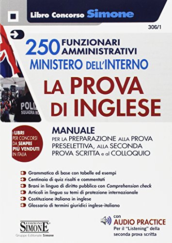 Il volume è diretto a coloro che intendono prepararsi alla prova preselettiva, alla seconda prova scritta in lingua inglese e alla prova orale del concorso pubblico bandito dal Ministero dell'Interno per l'assunzione a tempo indeterminato di 250 Funzionari amministrativi (G.U. 2 maggio 2017, n. 33). Tra le materie la cui conoscenza e richiesta nelle prove d'esame vi e, dunque, la lingua inglese. Seguendo il programma previsto dal bando, il manuale e stato strutturato in modo da rispondere pienamente alle esigenze del candidato. Nel dettaglio, il testo e costituito.
